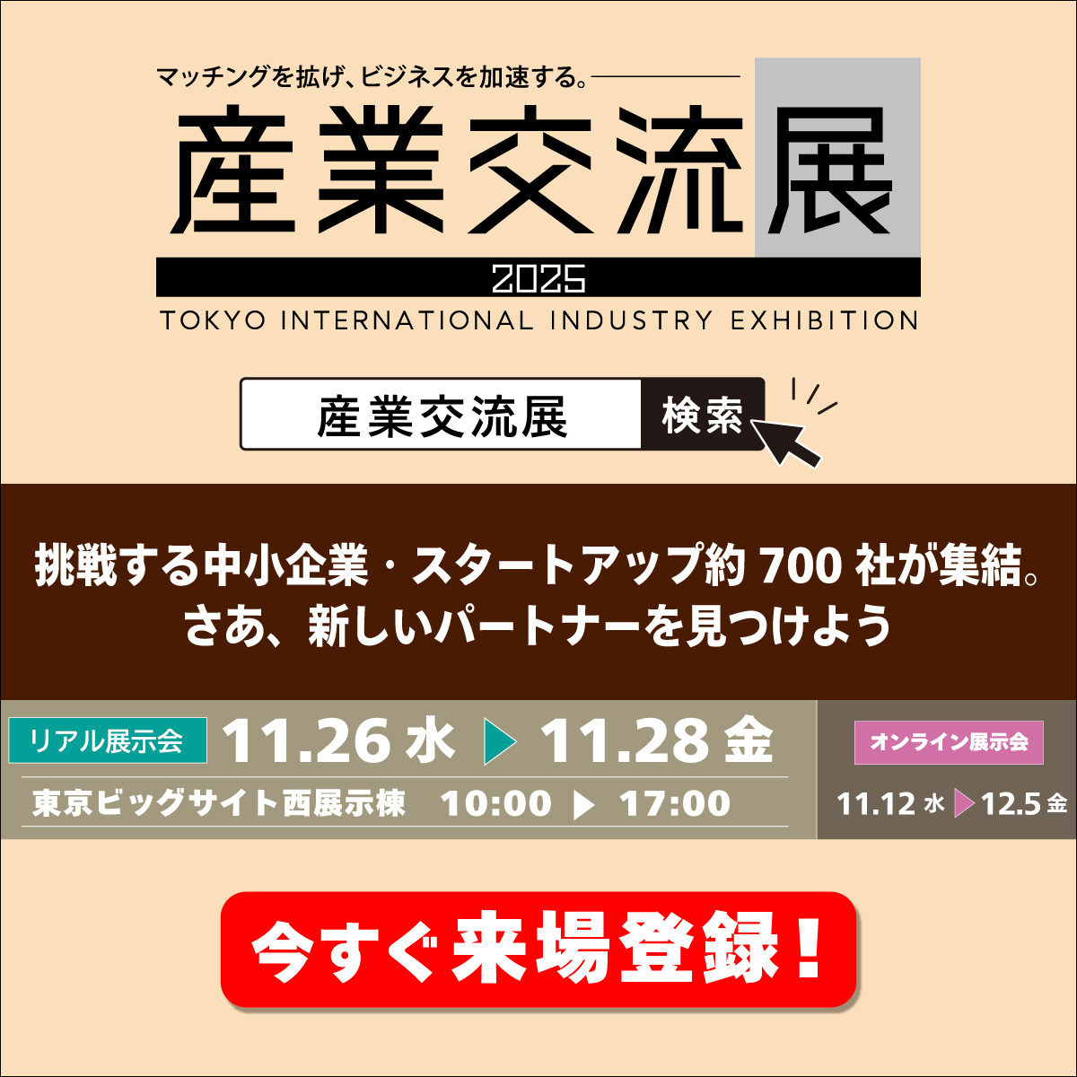 11/20(月)~11/22(水)の3日間、「産業交流展2023」へ出展いたします。